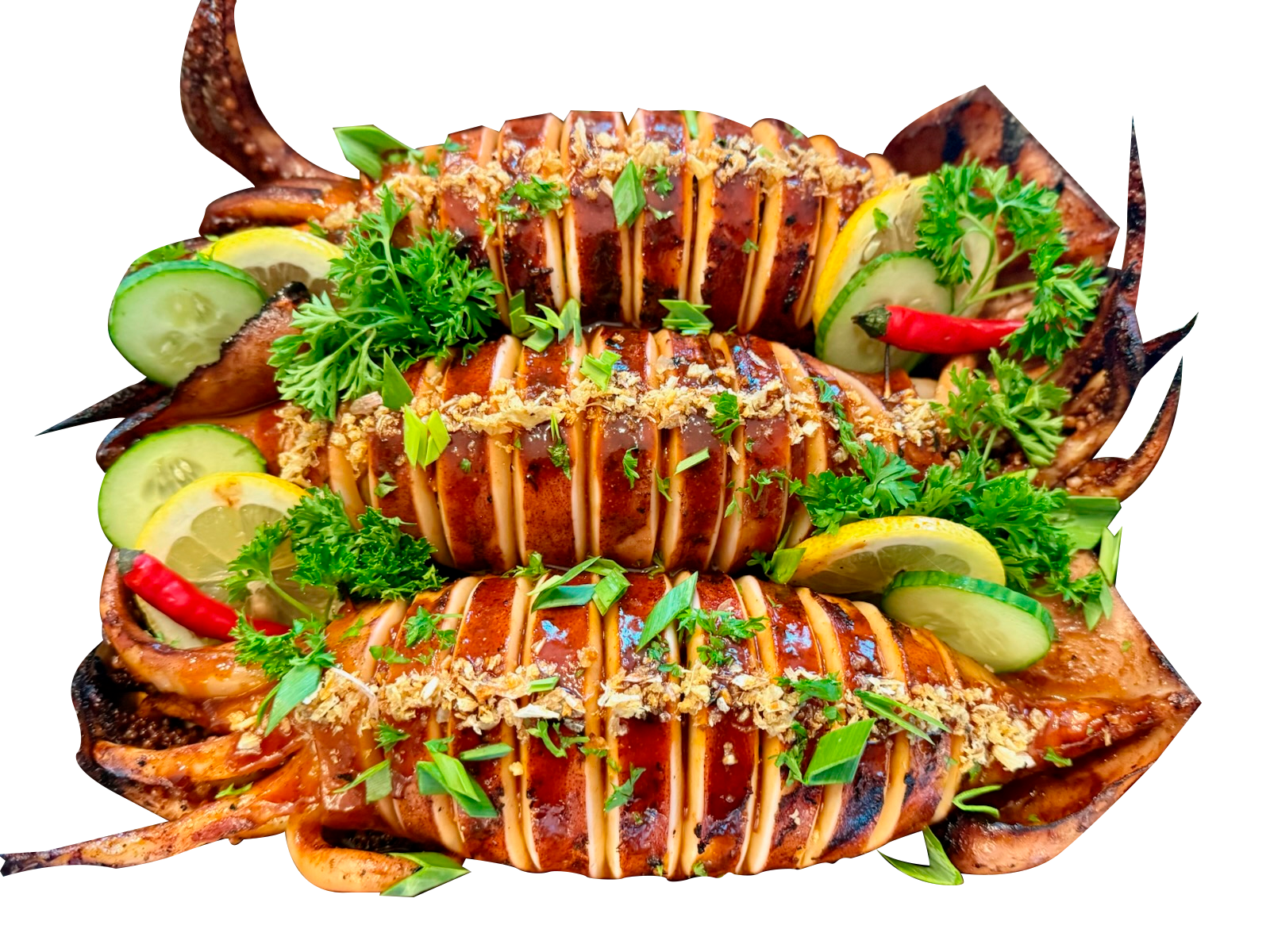 Crispy bits of pork belly loaded with seared onions, garlic, butter, and green chilli. The tangy, citrusy notes from lime juice or calamansi brighten the richer flavors of the dish. Served with Garlic Fried Rice and seasoned sunny side up egg.